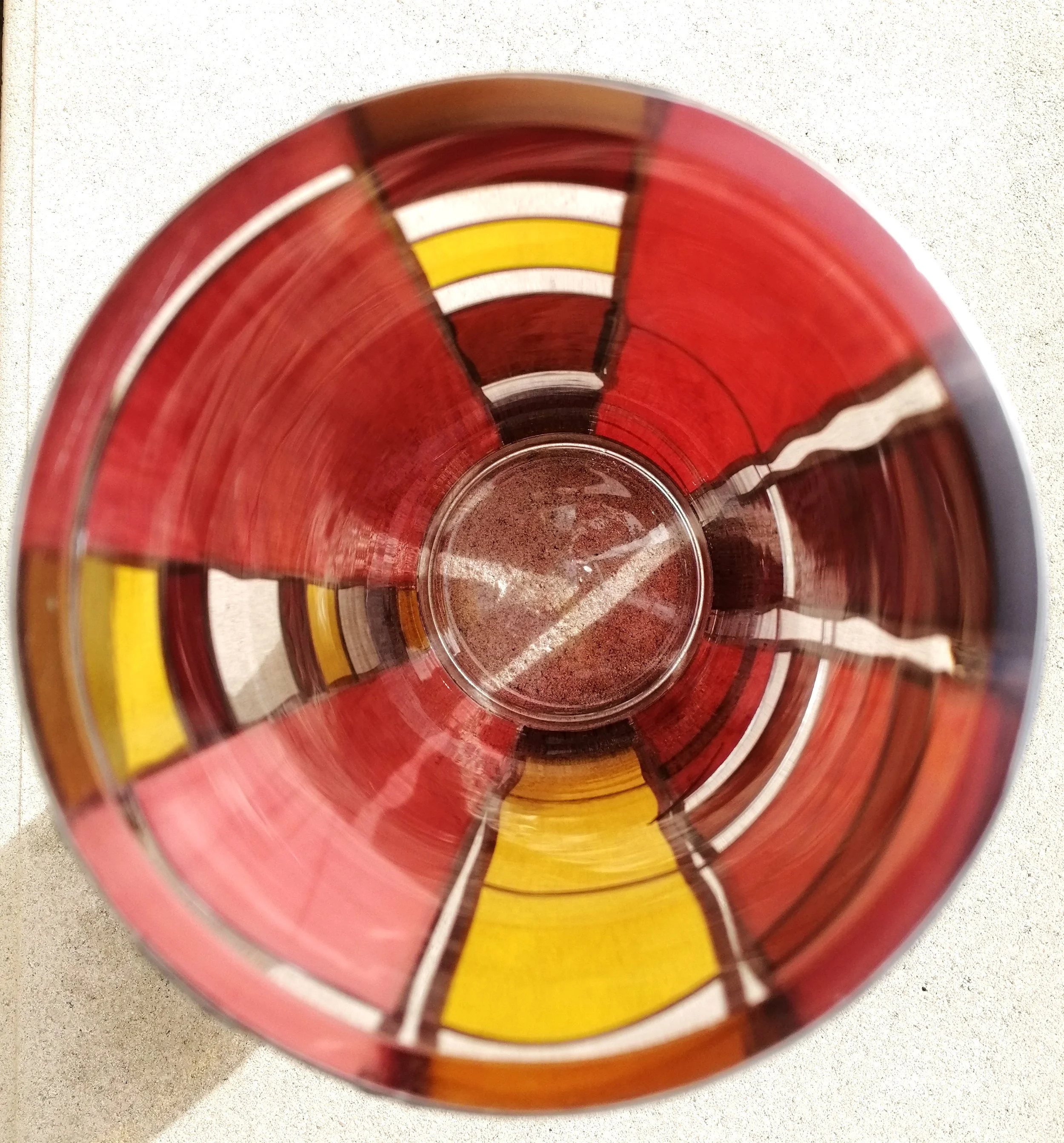 The design allows each colour to stand out and create an Art Deco pattern. It has an organic feel, a hint of geometry and function, with a romantic touch. Add flowers and enjoy. By a window, let the light stream through the soothing, exquisite colours.